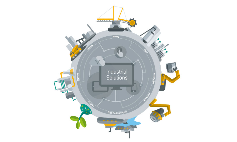 Wesentlicher Bestandteil unseres Konzepts ist die Gliederung der Broschürenstruktur nach Branchen. Die Imagebroschüre „Insights“ arbeitet branchenübergreifend und berichtet in Magazinform über aktuelle Themen und Projekte von Industrial Solutions. Das Magazin erscheint von nun an jährlich.