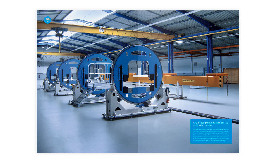 Branchen-, Technologie- und Produktbroschüren komplettieren das Kommunikationskonzept und informieren anschaulich über das Leistungsportfolio und die jeweiligen Prozesse der BA. Ein eigens konzipierter Branchenkreisel fungiert innerhalb der Broschüren als wiederkehrendes Element und wird als neues Key Visual in der internen und externen Kommunikation eingesetzt.